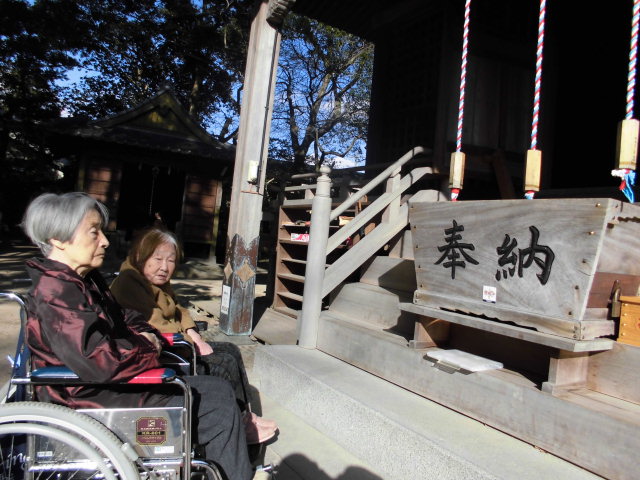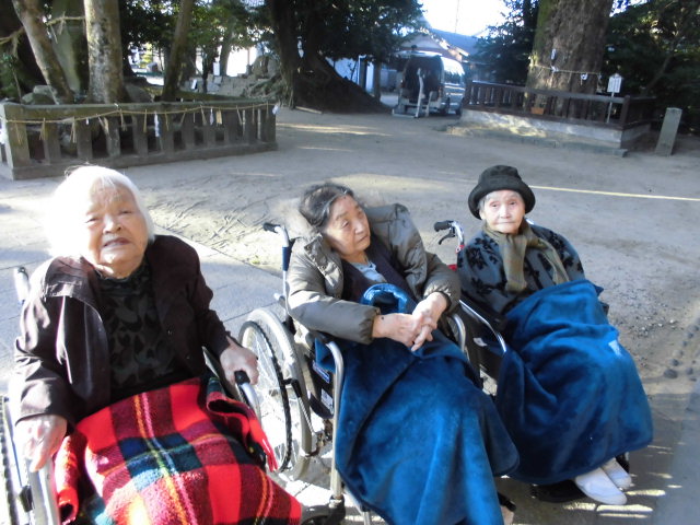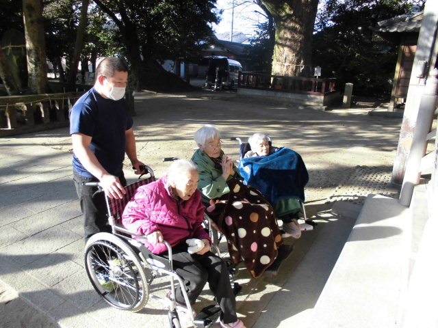 平成30年2月2日 初詣 おもやい 2018/02/02 16:33 【おもやい】では、1月6日、7日に分けて、入居者様と小郡にある御勢大霊石神社に初詣にでかけました。 寒かったですが、お天気のよい日でした。 お願いごとをされる入居者様方。 半袖の職員、気になります・・・。 みなさん、それぞれにお願いごとをされ、寒い中、お疲れさまでした。よい年になるといいですね! インフルエンザが流行っています。【おもやい】では、感染された入居者様は、おられませんが、皆様、手洗いやうがいをしっかり予防されてお過ごしください。 次の記事へ 一覧に戻る 前の記事へ