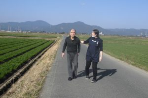 少し風がありましたが、とても暖かく、ひばりの鳴き声も聞こえてくるなど、畑をながめながらの散歩は、とても気持ちのよいものでしたので、入居者様が、にっこりされることもありました♪