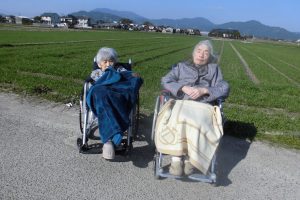 暖かい日が続いていますが、【おもやい】の入居者様方は、昨日、外で庭いじりをされたり、職員と散歩を楽しまれました♪