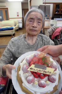お誕生日会 おもやい 2018/03/14 16:37 寒さもようやくひと段落し、日に日にあたたかさを感じています。 みなさん元気にお過ごしでしょうか? 1月2月の方のお誕生会をしました♪ お昼ご飯に、お誕生日の方が食べたいメニューを手作りしました。 唐揚げ、お刺身を美味しく頂きました。 ケーキ屋さんのケーキ(写真左)とスタッフ手作りの大きなケーキ(写真右)は、 とても美味しい!と喜んでくださいました。 みんなで一緒に食べてほっこりとしたお誕生日会になりました(*^_^*) 次の記事へ 一覧に戻る 前の記事へ