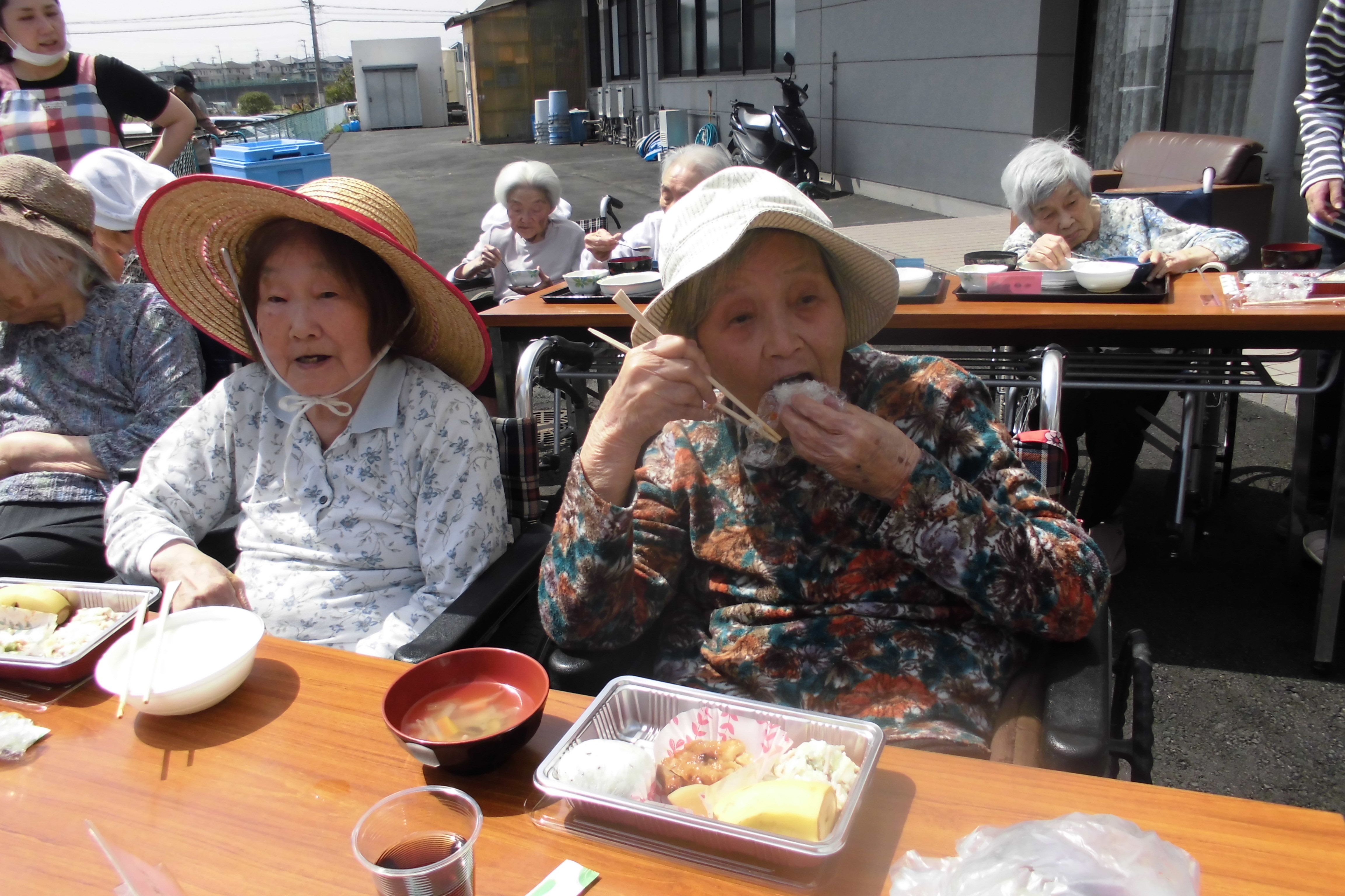 11時半ごろより、みなさん、外に出ていただき、お弁当を食べていただきました♪