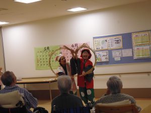 平成30年4月26日 誕生会 まどい 2018/04/30 17:43 誕生月が3月・4月の入居者様を対象に誕生会を行いました!(^^)! 今回はボランティアの方に「南京玉すだれ」を披露して頂き、 入居者様は歓声を上げて楽しまれ、たくさんの笑顔を見せてくださいました(^^)v 次の記事へ 一覧に戻る 前の記事へ