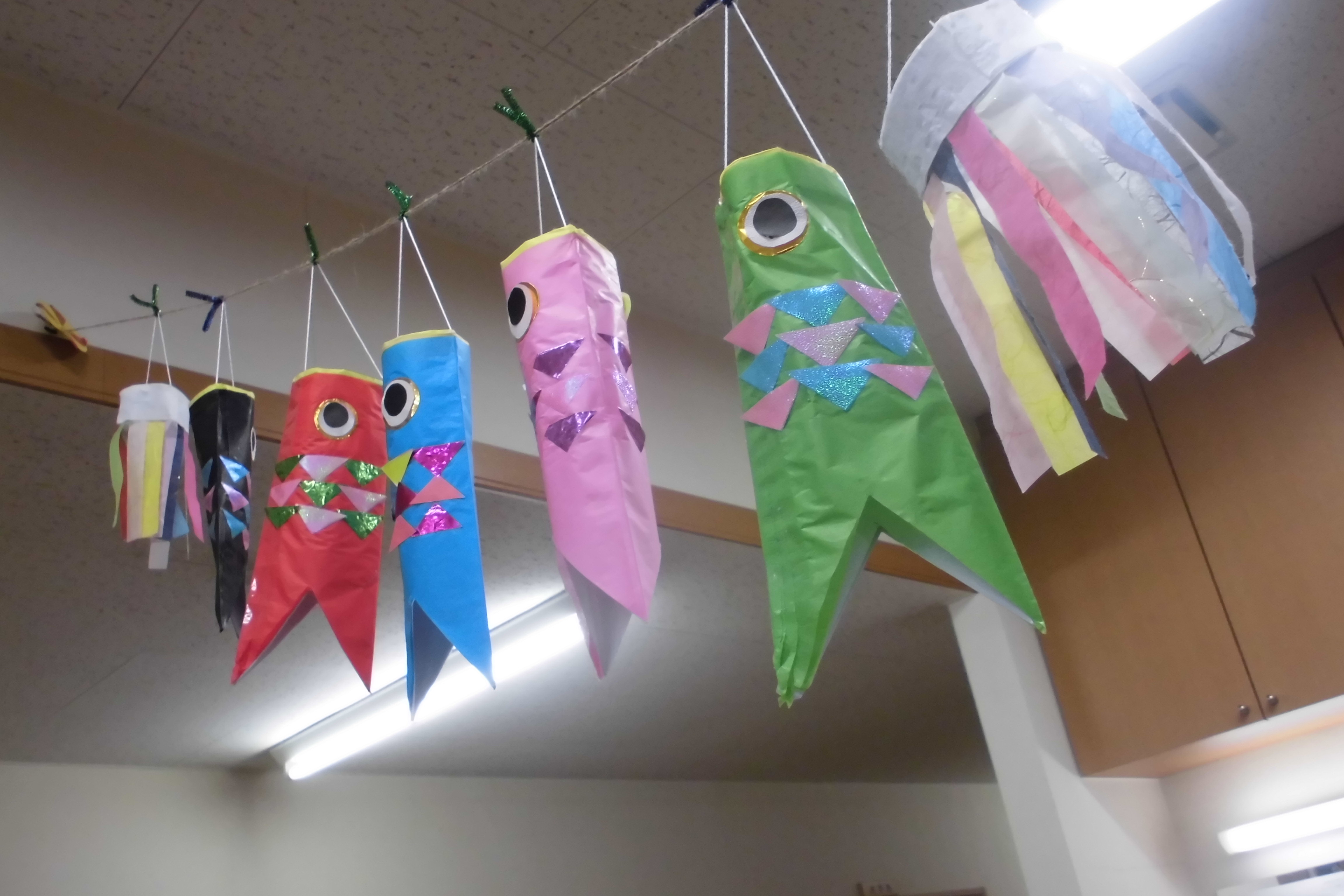 職員Iが、封筒を使って鯉のぼりを製作!仕上げは、入居者のH様に手伝っていただき、かわいい鯉のぼりたちがたくさん出来上がりました!