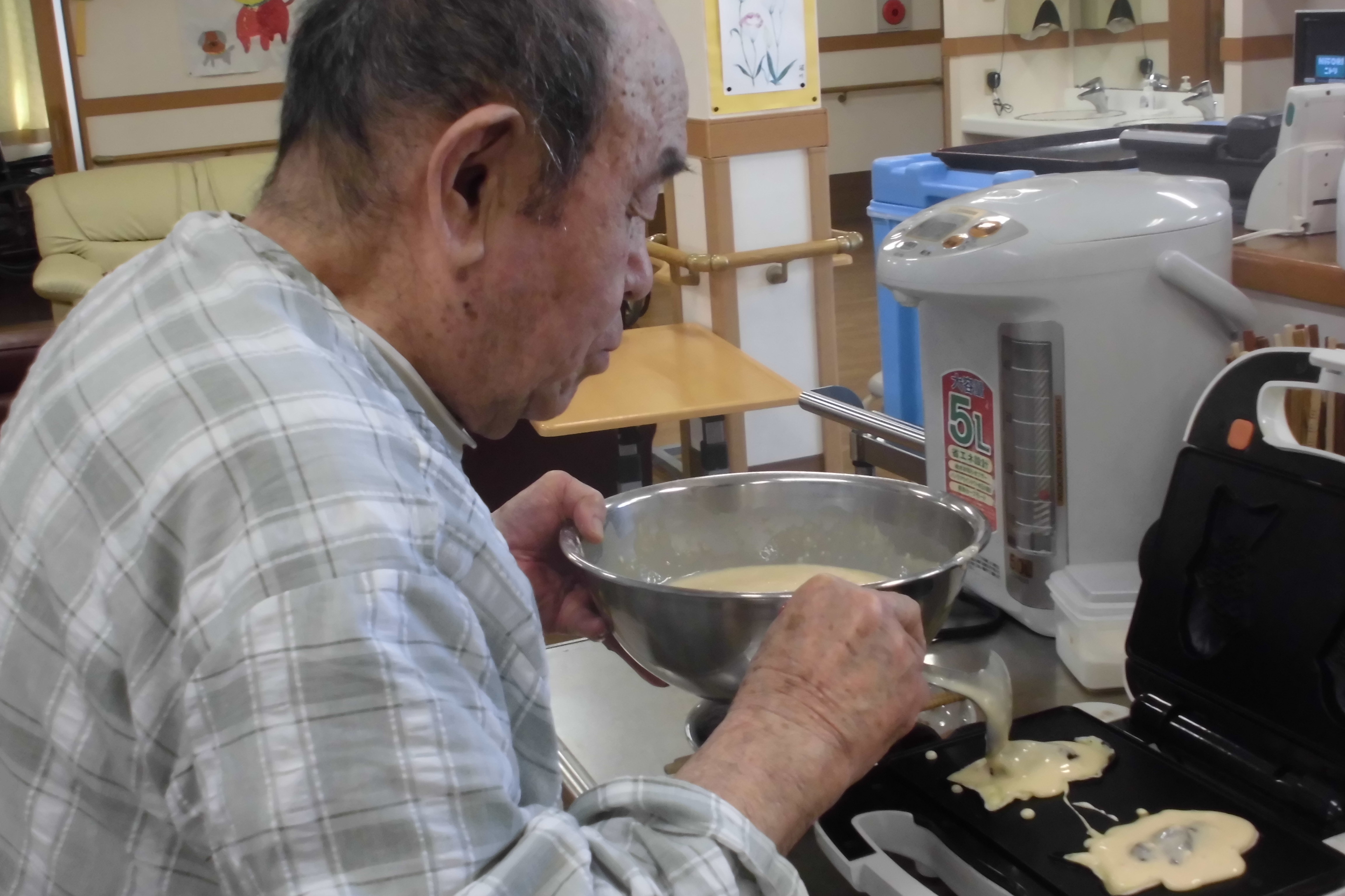 【おもやい】では、先日、おやつに入居者様にお手伝いいただき、鯛焼きづくりに挑戦しました♪