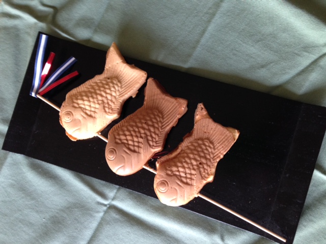 アツアツの鯛焼きが2匹づつ、どんどん焼けていき、こし餡のほかに、カスタード味にもトライ!