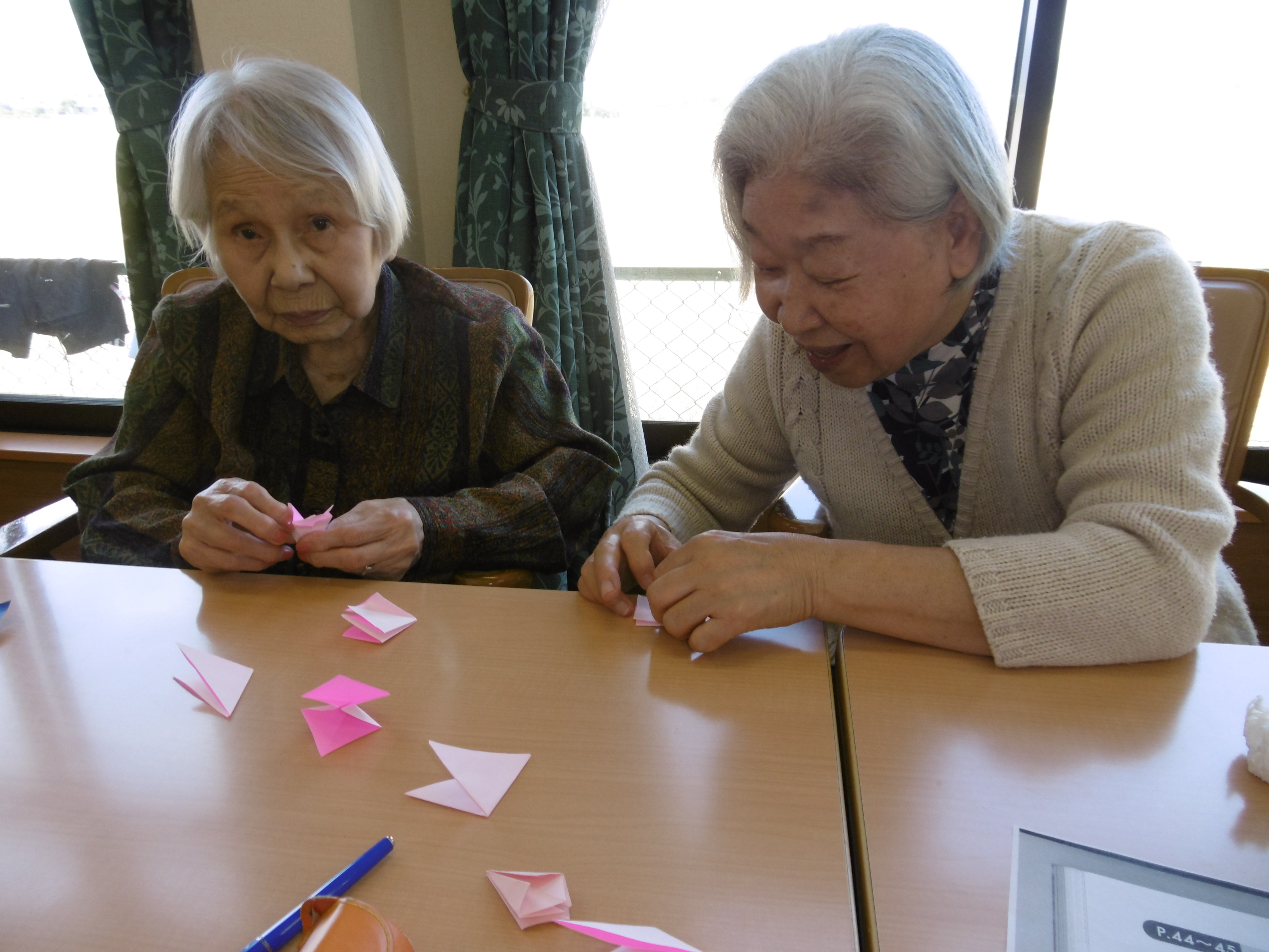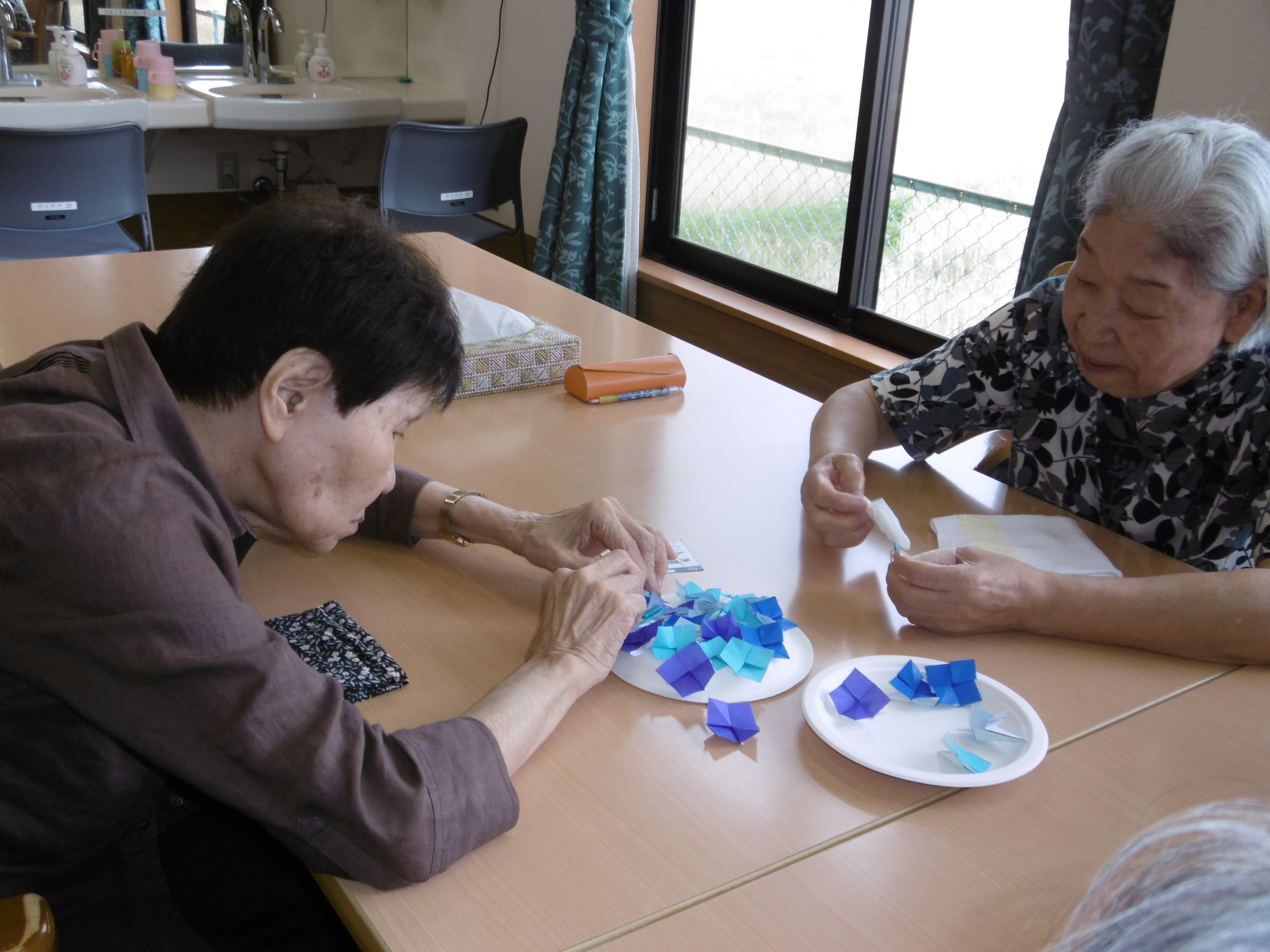 折り紙を始め、はさみでの細かい作業は職員でも目を細めてしまうこともありますが、手先が器用な利用者様の手にかかればあっという間に完成。