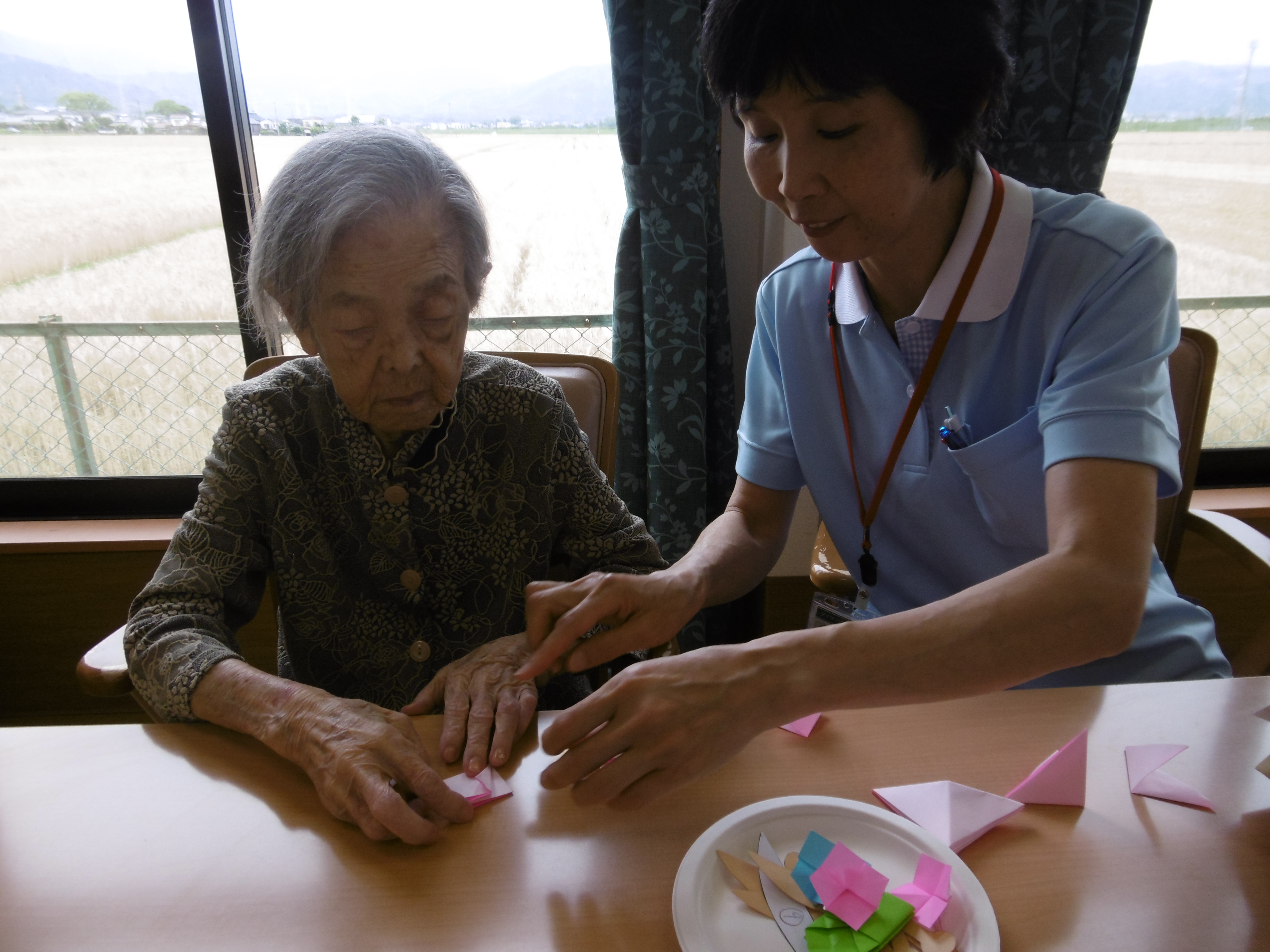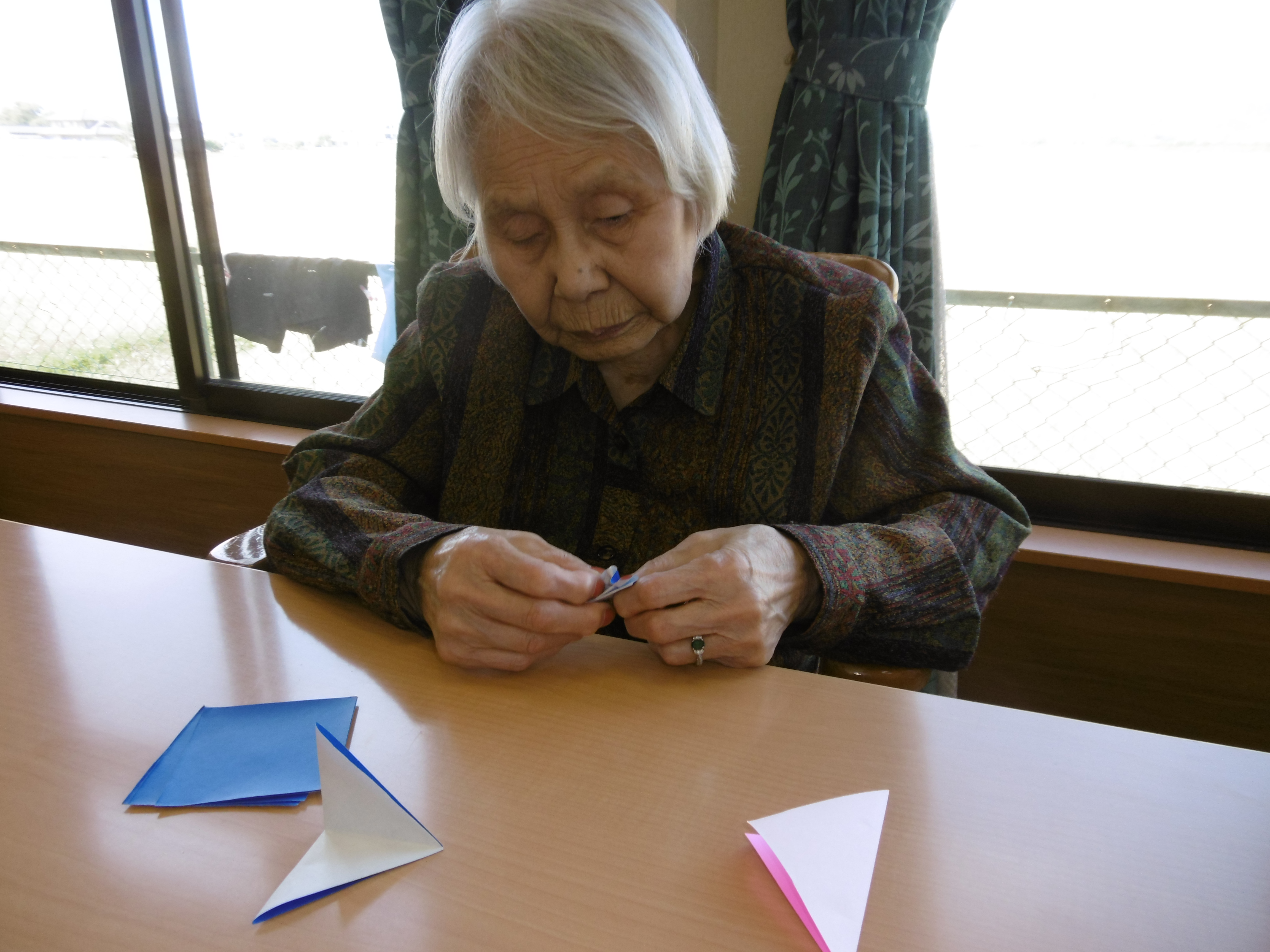 折り紙を始め、はさみでの細かい作業は職員でも目を細めてしまうこともありますが、手先が器用な利用者様の手にかかればあっという間に完成。