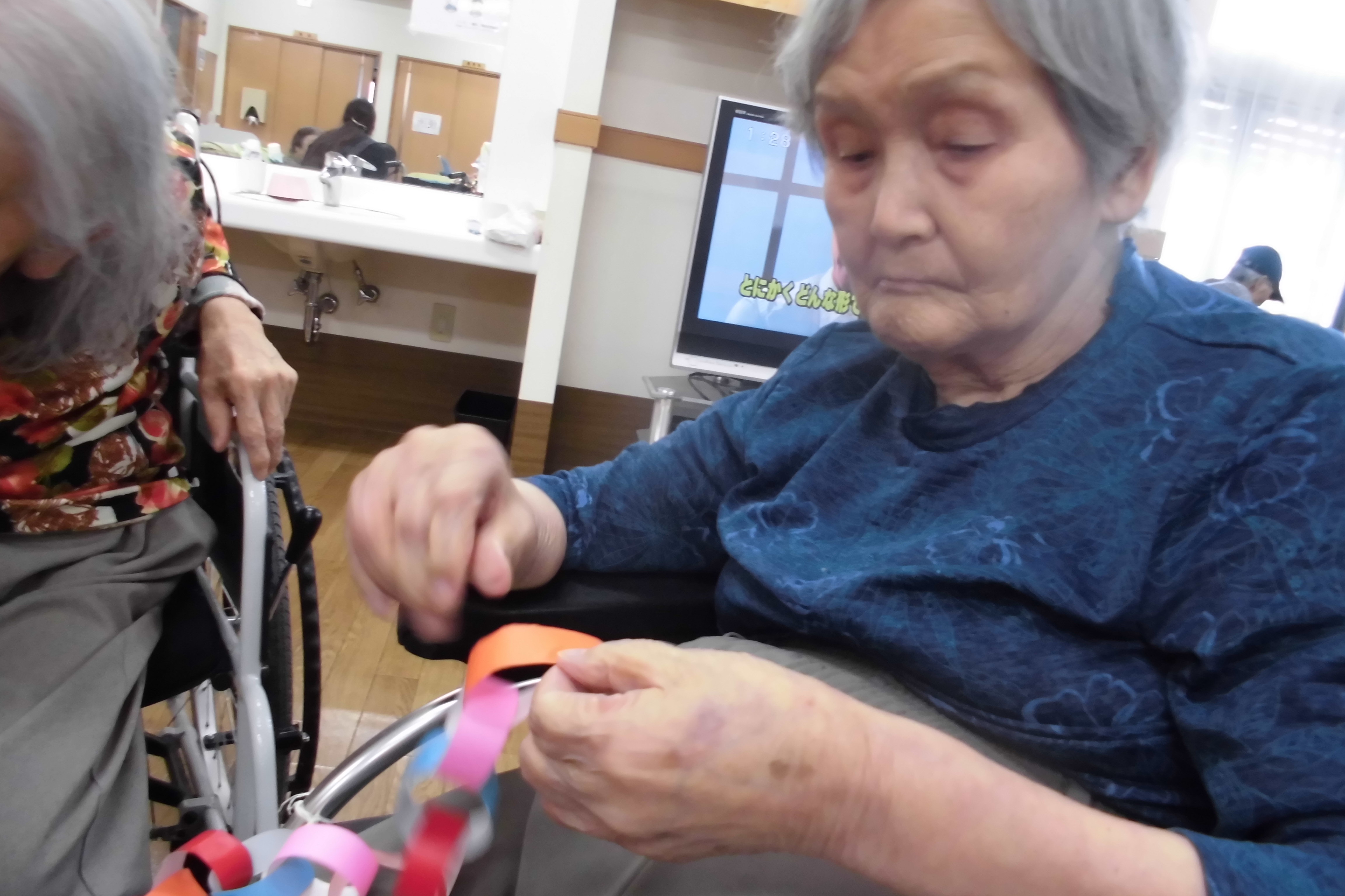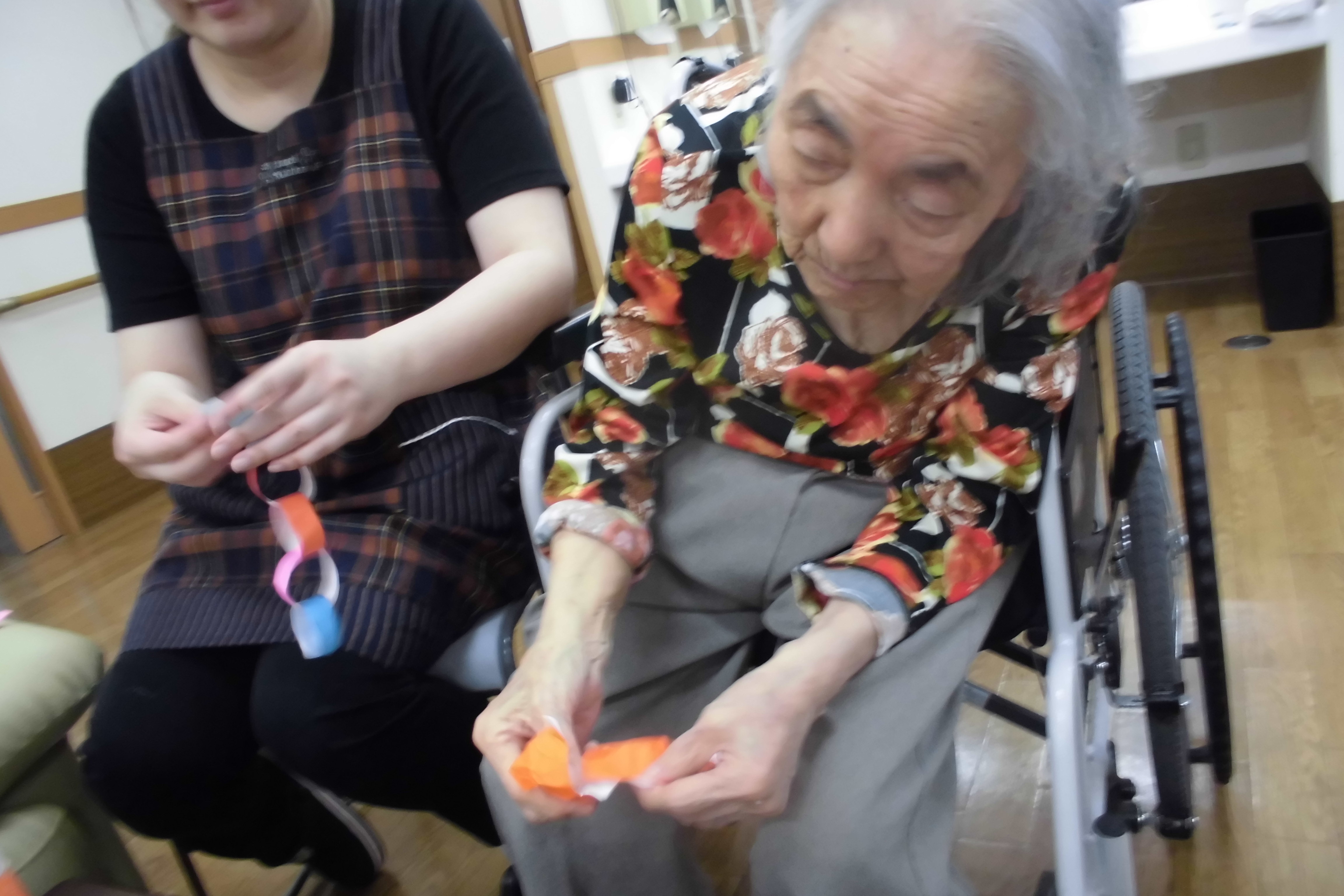 【おもやい】では、先日より入居者様と少しづつ作っていました七夕飾りが仕上がりました!