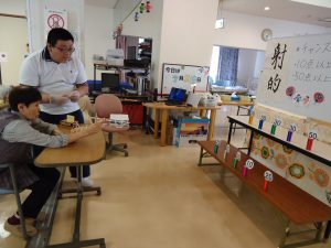 日和はヨーヨー釣り&魚釣りの露店を出し、利用者様にも店番のお手伝いをして頂きました。