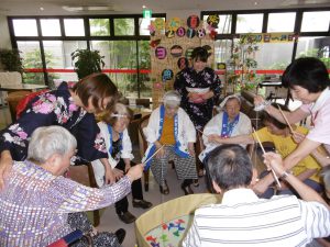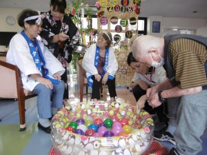 今年は今までの夏祭りを一新し、7月20日から5日間を夏祭りウィークと題し、利用者様に各フロアーを回っていただき夏祭りを楽しんで頂きました。