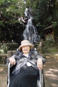 滝の前での記念撮影。駐車場は暑かったですが、滝の側は、とても涼しかったです。