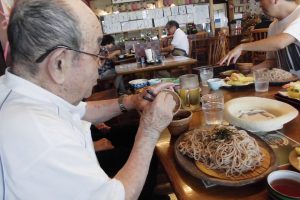 ビールで乾杯され、喉を潤される入居者様、お肉好きなH様は、メニューを見て即、豚カツ定食に決められたり、カレーや天ぷらそばなど、皆さん、お好きなものを注文され、楽しく食事を楽しんでいただきました。
