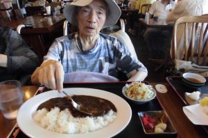 ビールで乾杯され、喉を潤される入居者様、お肉好きなH様は、メニューを見て即、豚カツ定食に決められたり、カレーや天ぷらそばなど、皆さん、お好きなものを注文され、楽しく食事を楽しんでいただきました。