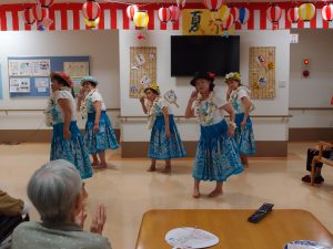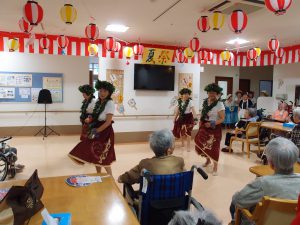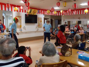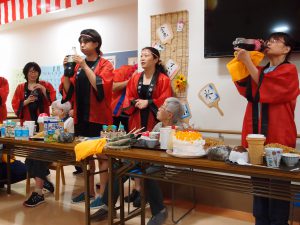 平成30年8月13日 まどい夏祭り まどい 2018/08/13 18:42 まどい夏祭りを開催致しました(^^)v 外部のボランティアや職員の出し物で大変盛り上がり、利用者の皆様に楽しんで頂くことが出来ました(≧▽≦) チーム対抗!早食い、早飲み 男性職員によるヒゲダンス! 津古フラリーダンスの皆様!ありがとうございました!(^^)! 次の記事へ 一覧に戻る 前の記事へ