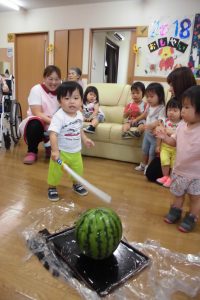 平成30年8月15日 保育園交流会 ~その1 すいか割り~