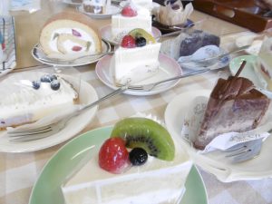 沢山の中からショートケーキやモンブラン、タルトにフルーツロールケーキ。