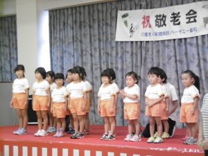 まず初めは毎年恒例になりました「みすず保育園」の園児さんによる「手をたたきましょう」「とんぼめがね」を歌って頂きました。