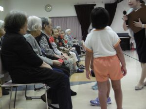 可愛い子供さんの姿に利用者様の表情も優しい笑顔に、歌に合わせ手を叩いたり、泣きまねから怒り顔まで、一緒に振りをして楽しまれていました。