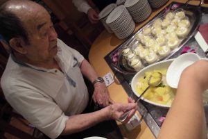 入居者様が、ビュッフェにてお好みのものをお皿に取られた一例。