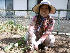 職員の方が慣れない畑仕事に息が上がり、利用者様に助けられる一面も。