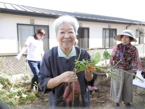 利用者様にお手伝いして頂きながら、今年も無事にさつま芋を収穫することが出来ました。