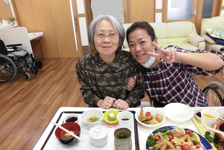 ご家族様と楽しそうにお食事を召し上がられる入居者様♪