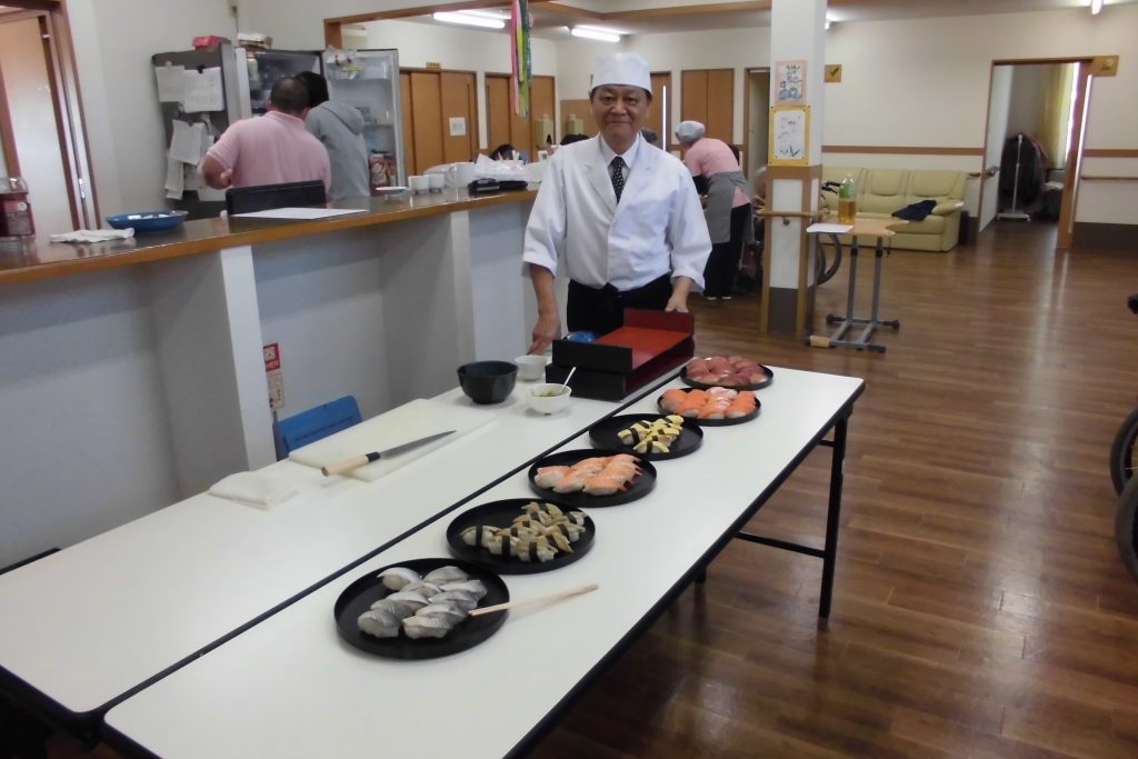 お寿司屋さんの雰囲気を味わうことができて、毎年、入居者様にもご家族様にも大好評です。