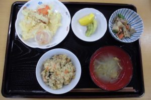 メニューは、中華おこわ、天ぷらの盛り合わせ、筑前煮、すまし汁、フルーツで、みなさん、美味しそうに食べられていらっしゃいました♪