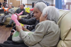 2019年3月1日 アートバルーン おもやい 2019/03/01 20:34 1月28日にボランティアの方がアートバルーンを 作りに来て下さいました。 犬やキリンやお花などいろいろな種類を風船で 作って下さり、皆様とても喜ばれていました。 一緒に作る時は風船が割れないように、 ドキドキしながらみなさん真剣に 取り組んでありました。 楽しいひと時を過ごすことが出来て入居者様、 スタッフ一同とても嬉しかったです。 ありがとうございました♪ 次の記事へ 一覧に戻る 前の記事へ