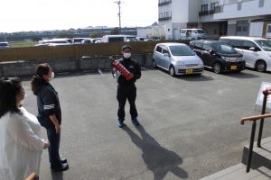 2019年3月7日 ☆おもやい避難訓練☆ おもやい 2019/03/07 14:53 2月21日に入居者様も参加して頂き 消防避難訓練を行いました。 夜間災害(水害)発生を想定し緊急連絡網にて 応援要請し避難指示場所へ避難する一連の 流れの訓練と消火訓練を行いました。 マニュアルに沿って落ち着いて確実に 連絡を行いました。 慌てず落ち着いて避難しました。 初期消火に必要な消火器の使い方から 消火まで訓練を行いました。 入居者様も一緒に消火訓練を実施しました。 次の記事へ 一覧に戻る 前の記事へ