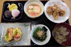 あさりのお吸い物、玉子豆腐のあんかけ、