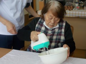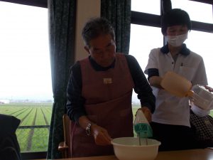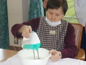 そして、ご利用者さまの皆さんで泡立ててくださった生クリームを乗せます♬