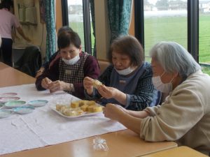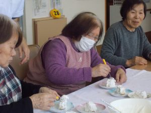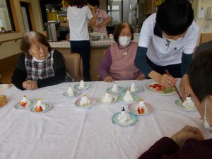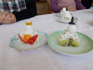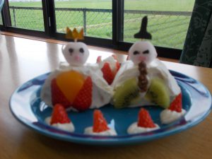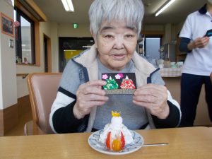 お雛さまとお内裏さまのケーキができ上がった時には、ご利用者様から、喜びと感心の声を聞かせていただき、職員一同、とても嬉しく感じました。