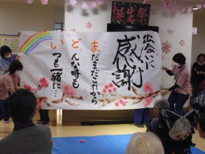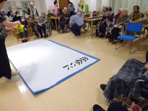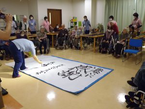 今回、「書道パフォーマンス」を新しく取り入れ、利用者様に喜んで頂けるか不安でしたが、予想以上の盛り上がり!スタッフも驚きでした(^O^)