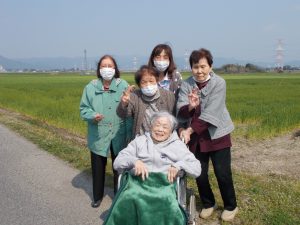 ご利用者様にとっては、少し長い距離だったと思いますが、みなさん、外のさわやかな空気を楽しまれ、頑張って歩かれました。お疲れ様でした。ゆっくりお休みくださいね♡