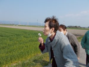 「タンポポ、見つかりましたよー!」と代わる代わるに、綿毛を吹いて行かれるご利用者様方。