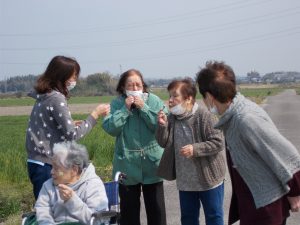 ご利用者様方、皆さん、童心に返られ、タンポポの綿毛を吹いて飛ばされておられました♪