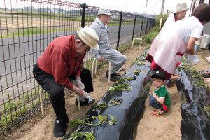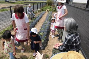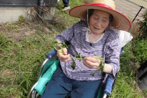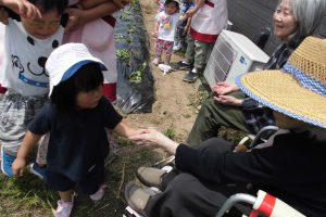 2019年7月5日 園児さんと芋の苗植え おもやい 2019/07/05 11:21 6月6日お天気もよく芋の苗植えを行い ました。 さつまいもの苗をおとのわ保育園の 園児さんと入居者様で一緒に丁寧に 植えて行きました。 腰が悪くならないように椅子に座ってから 植えて行きます。 子ども達の可愛さにたくさん笑みが こぼれていました♪ 今年もたくさん実ると良いですね♪ 秋の芋ほりが楽しみです。 グループホーム おもやい 次の記事へ 一覧に戻る 前の記事へ