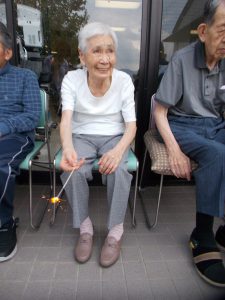 花火に火をつけると、皆さん、ドキドキ感が高まり、火花が大きくシューッと噴き出すと、拍手をして喜んでくださいました。