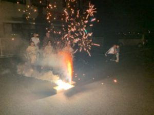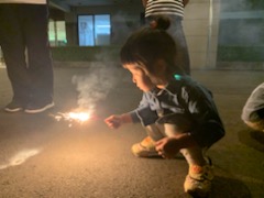 夏の暑さも和らいだ夜に駐車場にて花火を楽しみました。