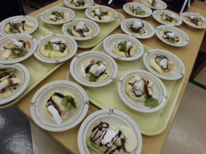 みなさん各担当で役割分担し(焼く、果物をカットする、飾りつけを行う、コーヒーを淹れる)