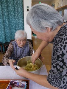 10月31日は、ハロウィンでしたが、もともと外国のお祭りであったため、以前は、あまり馴染みがありませんでしたが、最近では、身近なものとなってきました。街でも仮装した子どもたちや若い人たちを見かけたりしますね‼日和では、ご利用者様と秋の味覚であるサツマイモを使ったおやつ作りをし、ハロウィンを楽しみました。