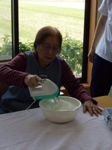 一方、こちらでは、卵白を泡立て、メレンゲ作りが始まっています(*’▽’)