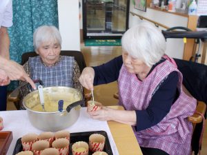 「カップの底まできれいに食べたよ!」!と、メレンゲたっぷりのふわふわ&しっとりの“サツマイモのスフレ”は、ご利用者様方に大好評でした。