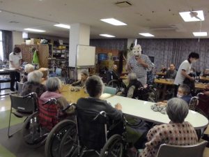 毎年、職員が手作りでお面を作り鬼に扮します。