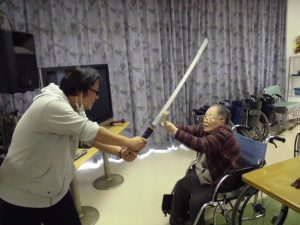 新聞紙を丸めた玉をぶつけたり、おもちゃの刀で鬼退治を楽しまれていました。