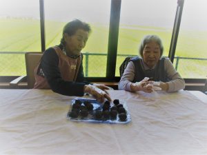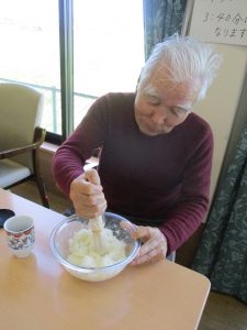 利用者様方が、餡子を丸めてくださったり、ご飯を麺棒でつぶしてお手伝いくださいました。