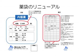 薬袋のリニューアル! みなかぜ病院 2020/06/18 9:30 2020年4月より、正式に薬袋のデザインを全面リニューアルしました。 一つ目は、患者様の名前を印刷する事で、大きく分かりやすくなりました。 二つ目は、服薬チェック表に、ご自身で記入(チェック)する事で、服薬忘れを確認する事が出来ます。 お薬は、決められた時間(タイミング)で服用する事で、症状を安定させ、副作用を最小限にできます。 この服薬チェック表を活用していただき、服薬の手助けになれば、幸いです。 次の記事へ 一覧に戻る 前の記事へ