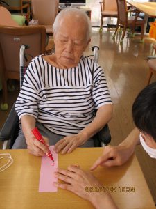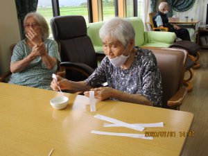 日和では、利用者様と一緒に、“七夕”に向けて、七夕飾りの準備を始めています。