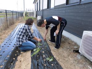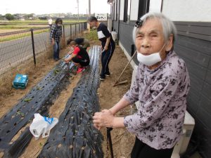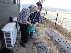 さつま芋苗植え おもやい 2020/07/15 14:04 2020年6月10日秋の収穫に向けて さつま芋の苗を、おもやい東側の畑に 植えました。 麦わら帽子をかぶって準備万端です! 芋づるは垂直ではなく、横に倒して 間隔をあけて植えて行きました。 横に根が張るので横に植えると良い と教えて下さいました。 植え終わった後は、水やりです。 入居者様が植えたところ全体に 水やりをして下さいました。 収穫が楽しみです♪ グループホーム おもやい 次の記事へ 一覧に戻る 前の記事へ